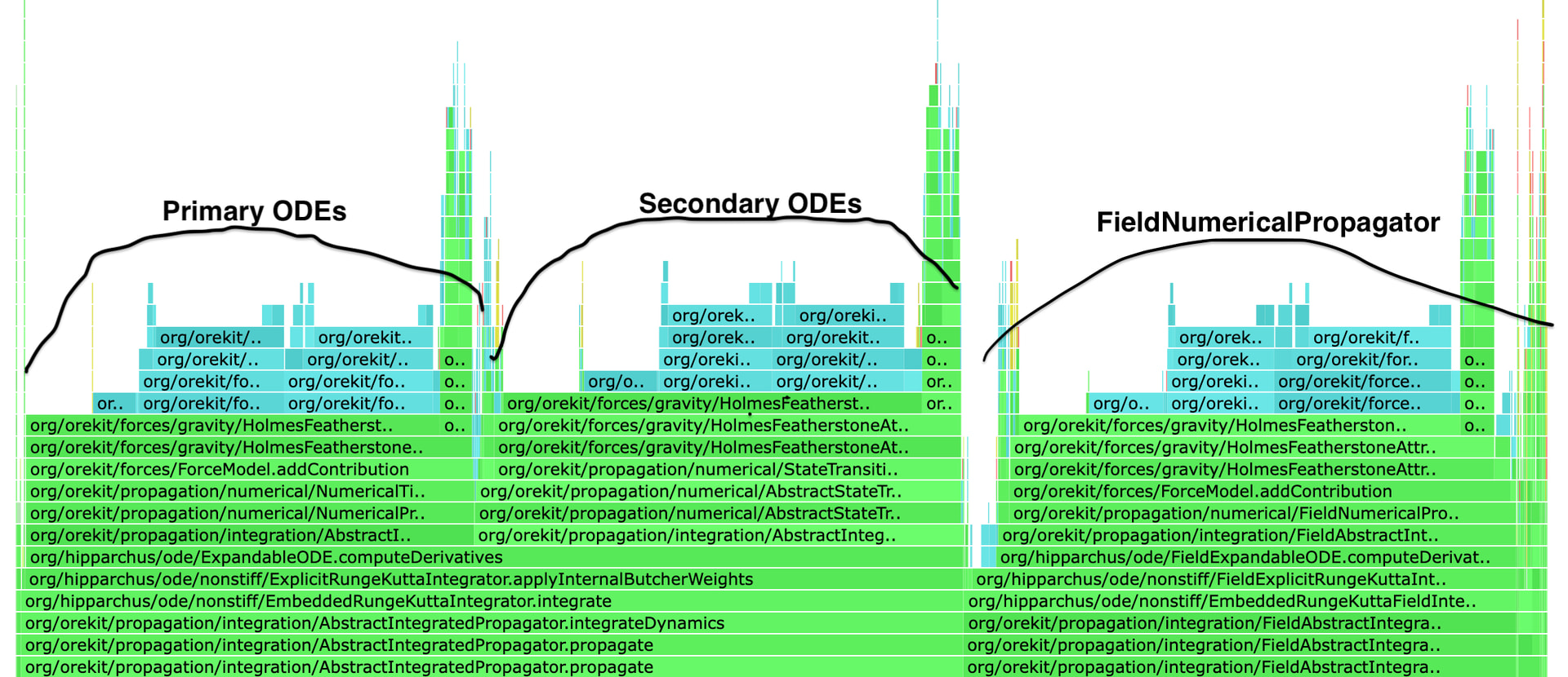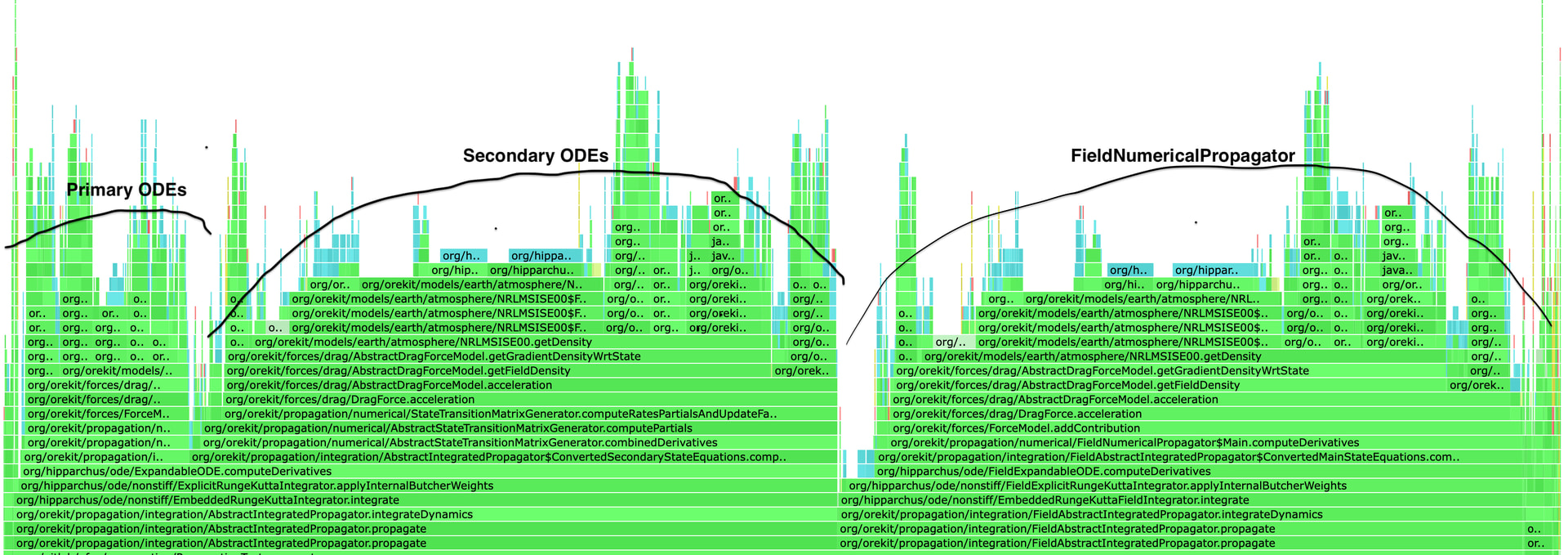 Measured the runtime required to propagate state and STM for an SSO-like orbit at 500km altitude for 24h, using both the variational equations approach used by the OD and FieldNumericalPropagator<Gradient> (so “full” automatic differentiation)