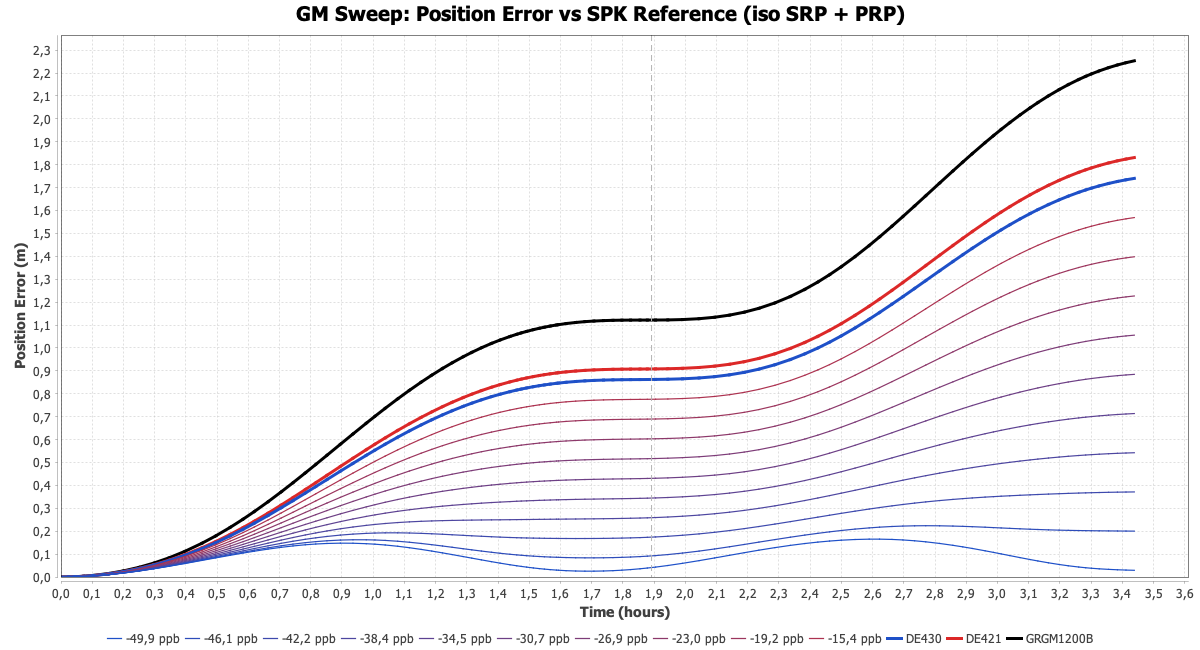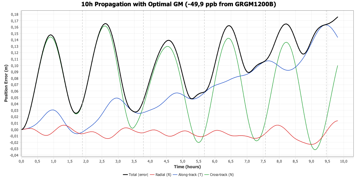 - It seems that indeed using the lower GM value was not just an overfit to that part of the trajectory, since it maintains a similar total position error when going from 3.4 hours to 10 hours propagation
