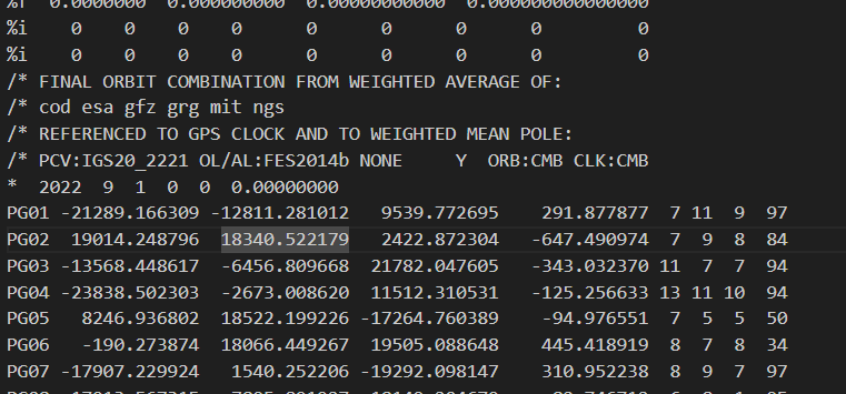 In the SP3 header, the time system is in the first line that starts with “%c”. It generally only contains a long series of “ccc” fields, which means everything is set to default, which is GPS. In some cases (see example-c-1.sp3 in the test resources), it defines the time system in characters 9 to 12 of this line (in this example, the line reads “%c G cc GPS ccc cccc cccc…”), so it is also GPS here. In the example-d-3.sp3 test resource files, you would see UTC as the time system used.
